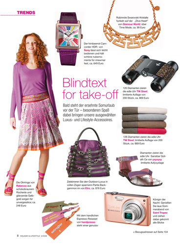 Seit Ausgabe 3/2009 gestalte ich als Art Direktor die Reisezeitschrift Holiday & Lifestyle